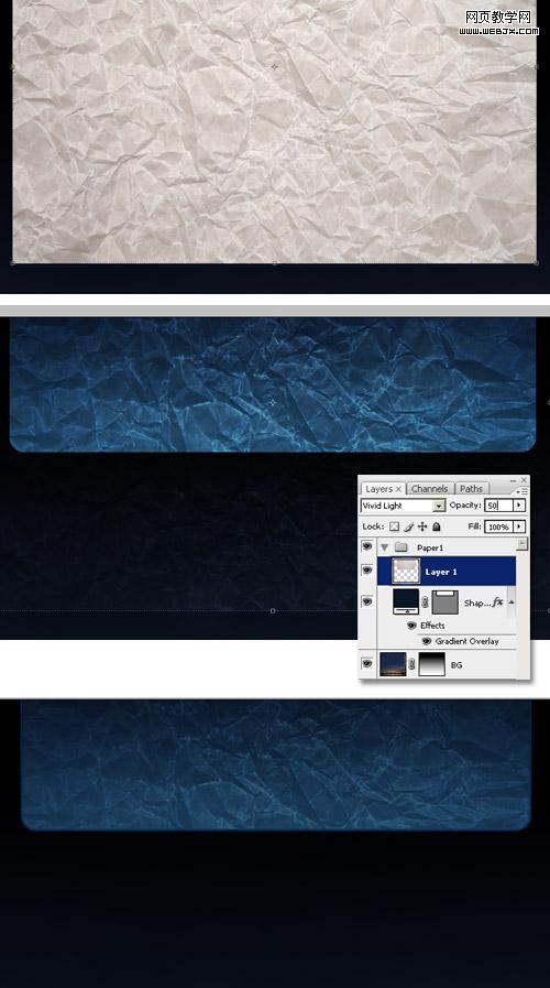 10.打開一張紙質的圖片,把圖片拖到頭部圖層的下面.然后用自由變形來調節(jié)它的大小,來做網(wǎng)頁的導航.如圖: