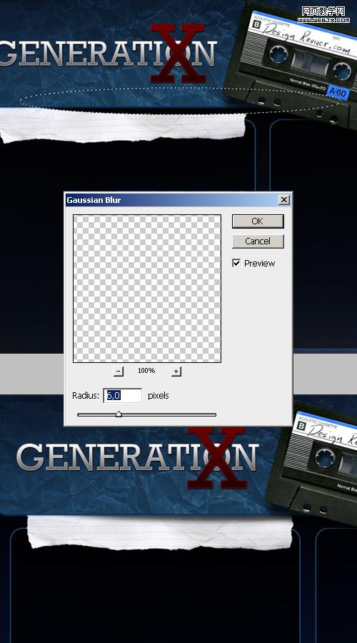 9.接下來對磁帶做陰影.這是一個做陰影的快速方法:按crtl+j復制對象,按crtl+u調出色相,設置亮度為-100,接著,濾鏡--模糊--高斯模糊,最后把圖層放在原對像后.如圖:
