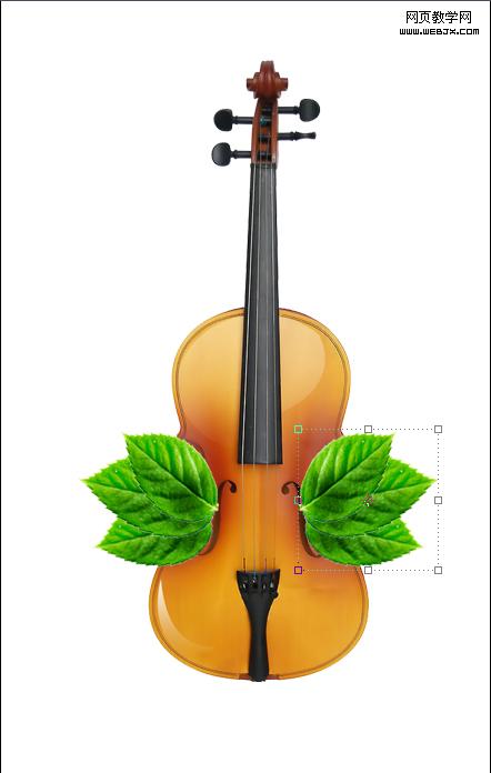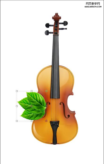 6、制作被吉它遮擋部位葉子的陰影。首先在葉子圖層上方新建圖層,選擇畫筆工具(硬度0),將圖層不透明度設為40%左右,用畫筆涂出陰影效果(注意只在吉它遮擋的部位涂陰影)