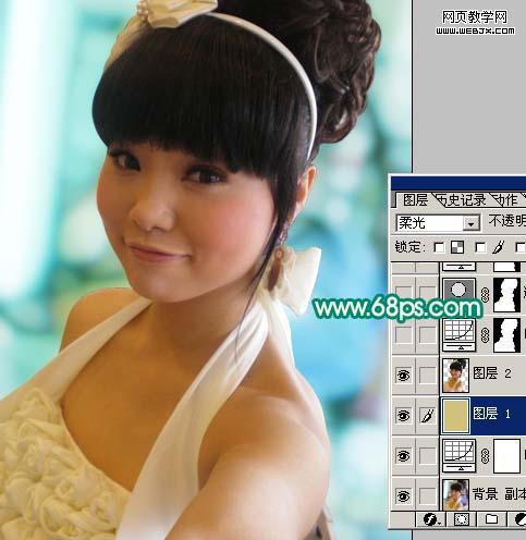 本教程以淡黃及淡青色為主。調色的時候需要把人物和背景分開來調。背景部分調成淡青色,人物部分則調成粉色調。當然可以按照自己的喜好調成各種顏色。