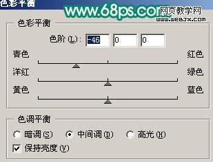 6、按ctrl + b 調整色彩平衡,參數設置如圖14,效果如圖15。