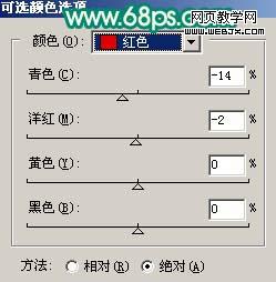 8、創建可選顏色調整圖層,參數設置如下圖。