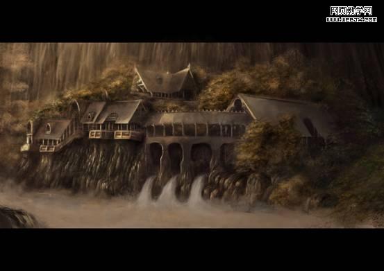 給畫面增加了一些細節,在城堡的主體上加上了一些樹木以及一些前景的碎石等,同時也加強了主光源。