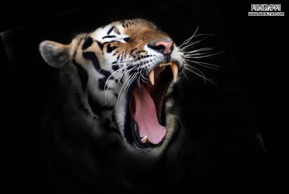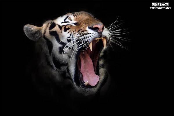 1、打開原圖素材,現在我們要將老虎從背景中分離出來,教程中提供的方法是用圖層蒙版然后一點一點的摳出來,但是我認為用通道來摳這個圖效果更好并且也更容易保存細節。首先我們打開通道面板,選擇紅色通道,將紅色通道復制一份,然后進行色階調整,將黑場的滑塊向右移動并將灰場的滑塊向左移動,直到背景幾乎變為黑色,老虎的邊緣包括胡須變為白色,然后我們用加深工具,選擇加深的范圍是陰影,將背景中不是黑色的部分加深,直到變為黑色,然后再將加深的范圍調整為高光,將胡須和耳朵等部分的顏色變的更加白一些。之后用套索工具在老虎的外邊緣向內一點的地方勾一個大致的輪廓,因為我們要將老虎內部的部分也變成白色,做好選區之后將選區填充為白色,然后點擊通道面板下面的“將通道保存為選區”,這個時候老虎的外輪廓就被完全的選中了,我們的摳圖也就完成了。(教程的2到4步都是講的如何用圖層蒙版+畫筆來摳圖,個人覺得比較繁瑣且不易于操作,恕在此不予翻譯,不熟悉通道的同學可以參考原版教程中的做法~~)