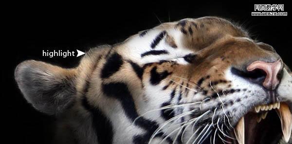 13、不要忘了在老虎的嘴唇和面頰上也加上一些高光。