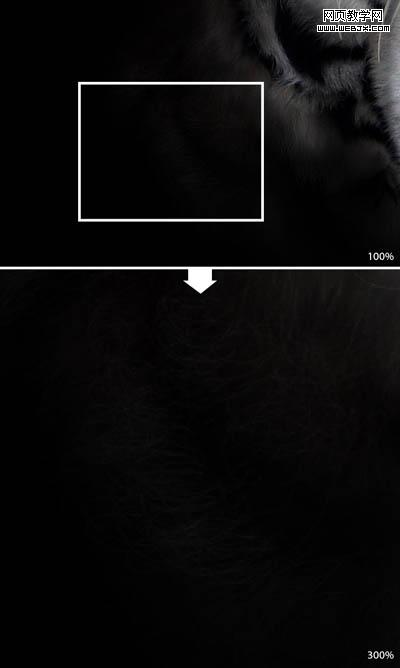 7、用1%到5%的不透明度,將胸口的一些白色部分還原出來。對于身體部分的淡化處理不能太魯莽。因為老虎的皮毛是不平整的,所以你應該能夠看到一些白色的部分。