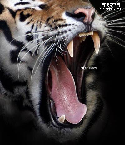 18、在虎牙的兩側添加陰影,這會使畫面看起來更生動。