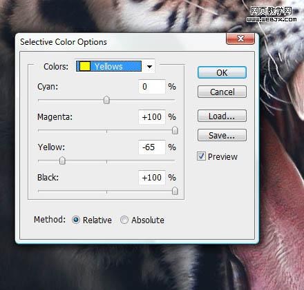 24、下面我們要添加調整蒙版,首先是可選顏色,選擇 圖層 > 新建調整圖層 > 可選顏色,分別選擇黑色和黃色,按下圖中的數據設置。