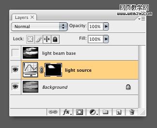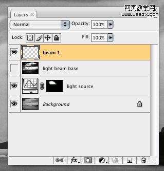 選擇背景圖層并拖動這個圖層到面板的新建圖標,來復制圖層并命名:light beam base.(木木:直接按ctrl+j也可)