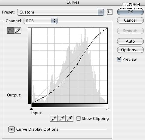 第八步:為整個圖像添加一個對比,在圖層的上方添加一個曲線調板,設置如圖: