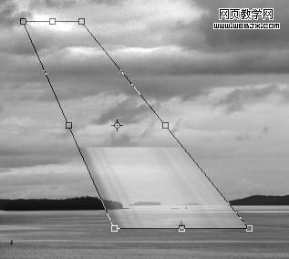 第四步:關閉light beam base圖層,選擇beam 1圖層,利用自由變形,拖動選區到底部,然后按住shift/ctrl,做出你自己喜歡的形狀來。