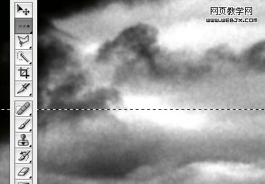 按ctrl+m打開曲線面板,曲線具有精控的功能,這樣我們就可以在圖像中做出一小塊白色的云層來增加對比度。在圖像頂部靠左大概三分之一的地方,這些白色的區域我們等下將要上光束從這邊透出來。