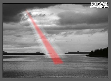 重得步驟3到步驟7,再為其它白色的區域添加光束。這里要注意的一點是要考慮清楚是從哪個角度照下來的。讓這些光束看起來像來自同一光源。在本例教程中我用三個同的光束來表現。