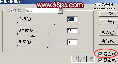 1、打開原圖素材,創建色相/飽和度調整圖層,參數設置如圖1,勾選“著色”選項,效果如圖2。