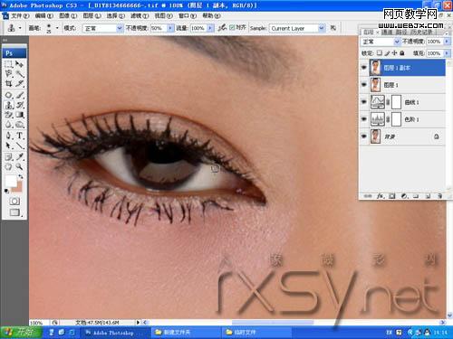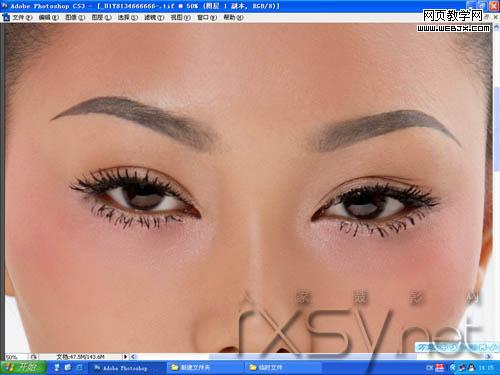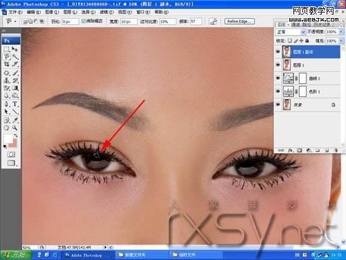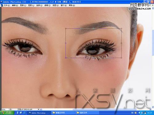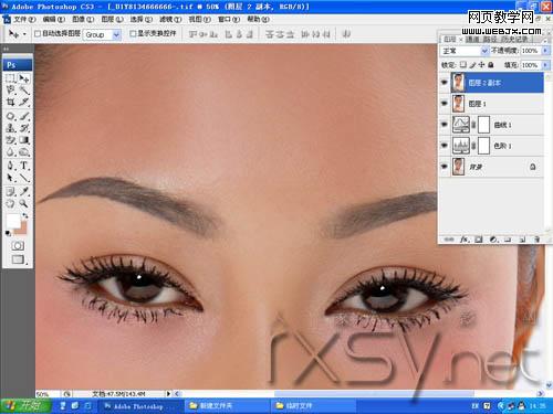2、觀察兩眼雙眼皮的形狀,右側(cè)雙眼皮不夠標準,睫毛也不夠明顯,如果采用真接修整的方法則會比較麻煩,所以我們可考慮將左側(cè)的睫毛加雙眼皮復(fù)制到右側(cè),首先將左側(cè)進行選中并復(fù)制。