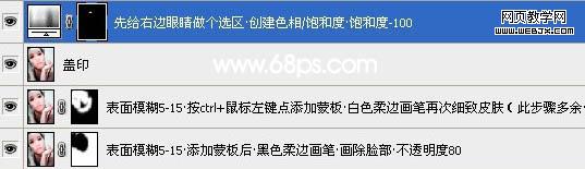 6、用鋼筆勾出右邊眼睛的選區,創建色相/飽和度調整圖層,飽和度設為:-100。