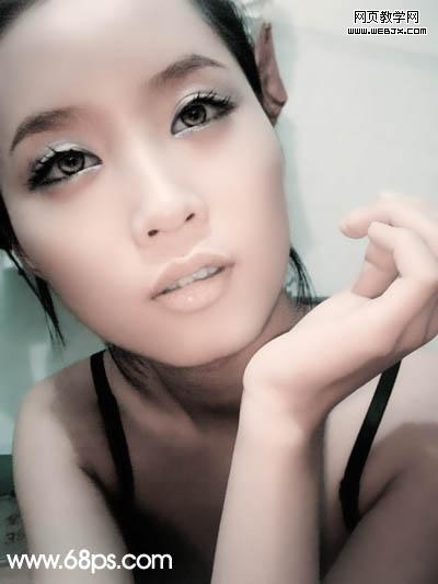 原圖素材偏色實在是比較嚴重,如果要真的還原,可能要花費很多功夫。不過作者非常巧妙的把圖片的色調減掉。這樣偏色部分就可以忽略。只要給人物磨好皮,再適當潤下色,精美的效果就出來了。