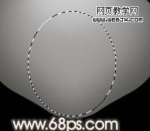 3、新建一個圖層,用鋼筆勾出圖4所示的選區,按ctrl + alt + d 羽化15個像素,然后填充顏色:#a2a19f。再新建一個圖層,選擇橢圓選框工具拉出圖5所示的選區,羽化15個像素后填充顏色:#cccccc。