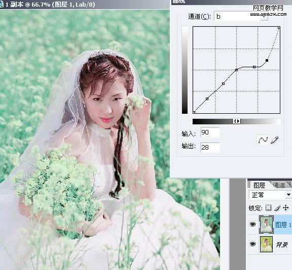 2、復制一層,曲線,b通道調節,如下圖: