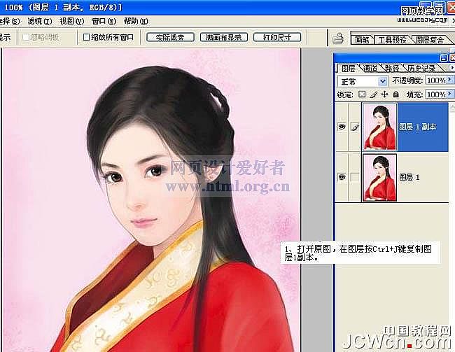 1、打開人物素材,按Ctrl + J 把背景圖層復(fù)制一層,如下圖。