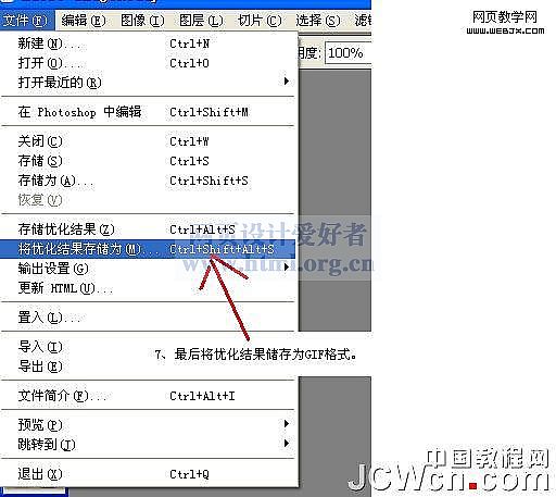 7、最后選擇菜單:文件 > 將優(yōu)化結(jié)果儲存為GIF格式。