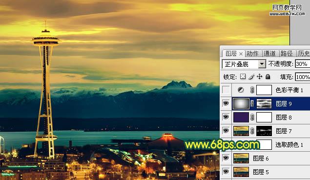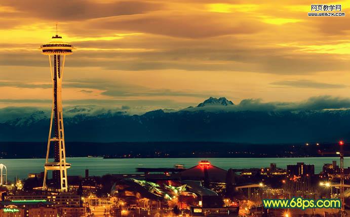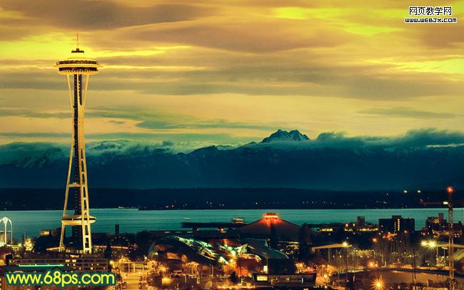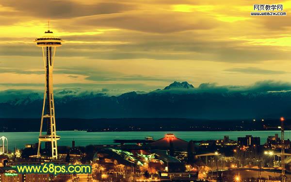原圖素材以藍色為主,調色的時候只需要把藍色部分做相應的調整,轉為自己喜歡的顏色,再適當加上一些補色并把燈光部分加強一下即可。