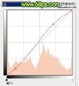 6、創建曲線調整圖層,對紅,藍進行調整,參數設置如圖6,7,效果如圖8。