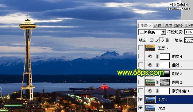 1、打開原圖素材,按Ctrl + J 把背景圖層復制一層,圖層混合模式改為“正片疊底”,不透明度改為:30%,效果如下圖。