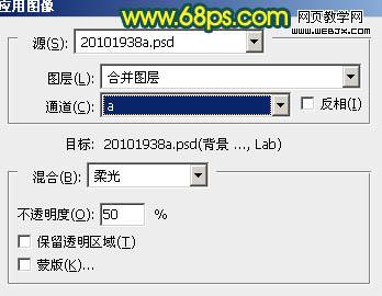 8、新建一個圖層,蓋印圖層。選擇菜單:圖像 > 模式 > Lab顏色,選擇不合拼,確定后執行:圖像 > 應用圖像,參數設置如圖10,效果如圖11。