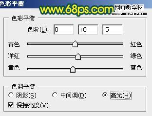 14、創建色彩平衡調整圖層,對高光進行調整,參數設置如圖21,確定后把圖層不透明度改為:50%,效果如圖22。