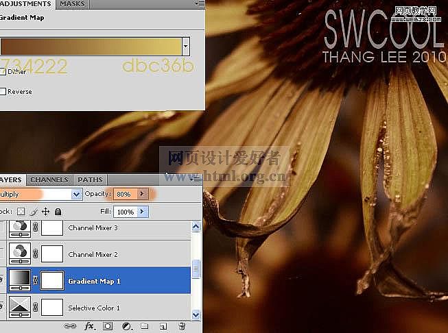 本教程介紹古典暖色圖片調色方法。作者調色以通道混合器調色為主,雖然很少用到,不過調色還是非常快捷的。色彩調好后海需要用濾鏡等加上一些簡單的雜色,增強圖片的古典韻味。