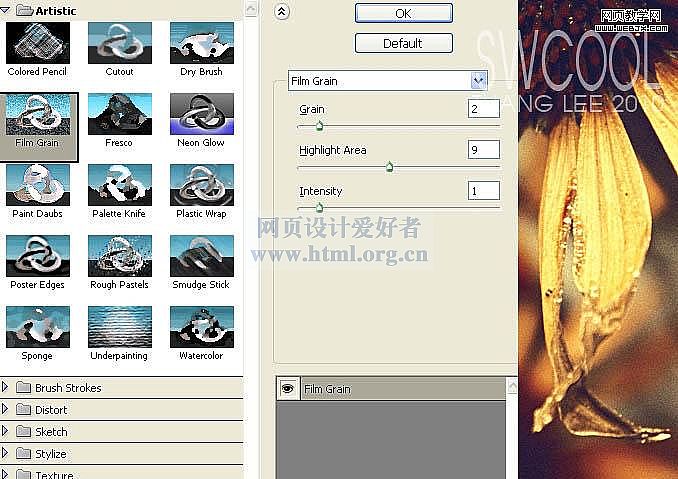 8、新建一個圖層,按Ctrl + Alt + Shift + E 蓋印圖層。執行:濾鏡 > 藝術效果 > 膠片顆粒,參數設置如下圖。
