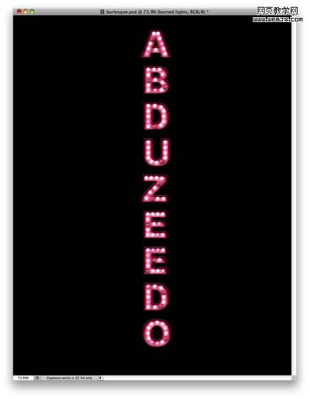 11、每個字母里都有壞掉的燈泡,我們按照下圖位置復制粘貼這些壞掉的燈泡(光點),然后把它們合并為一個層。 |