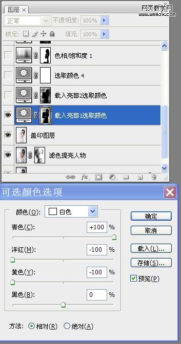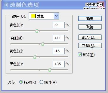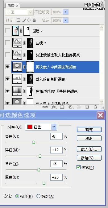 11、感覺人物膚色有些偏淡,再次進入通道面板,載入“中間調”選區,添加“可選顏色”調整圖層,按照設置參數對人物膚色再次進行調整。如圖所示: