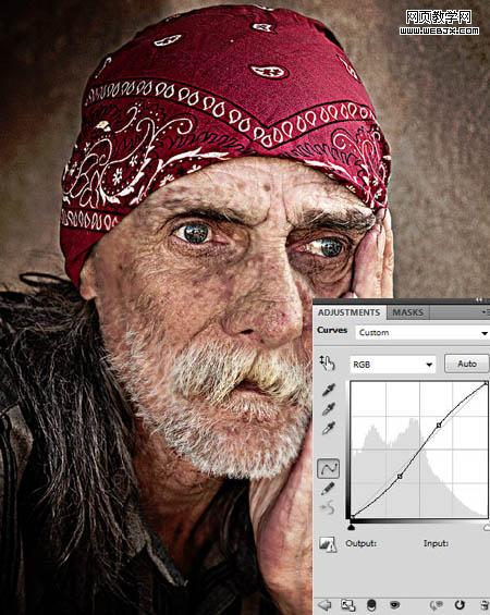 9、添加曲線,數值如下圖。圖像>調整>曲線,或者Ctrl+M。