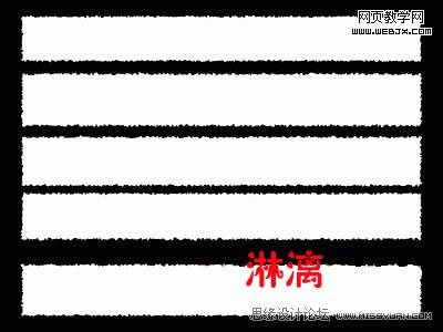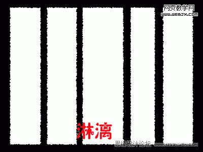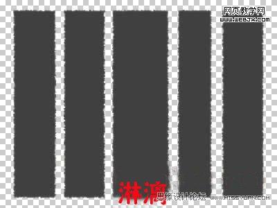 選擇矩形選框工具,在圖中畫出五個橫向的矩形選框,使矩形的短邊對齊到參考線上,注意這幾個矩形的間距要錯落開,不要一樣,矩形間的距離,就是將來紙條間距,如果想讓它緊密一些,不妨把間距設的窄一些。將選區存為通道,將通道命名為H,取消選擇。
