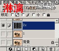 13、調整圖層位置:將圖層1副本置于圖層2(隱藏)之下,1c置于圖層1之下,再用移動工具將1c向右和向下分別移動2像素,此時的圖層面板位置如下.拼合可見圖層,將圖層1c命名為圖層1。