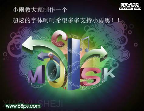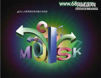 本教程效果圖構成元素較多,不過制作原理基本相同。就是把文字或圖形立體化。大致過程:先把文字或圖形適當變形做出透視感,然后再復制一層做出立體面,最后渲染高光和質感即可。