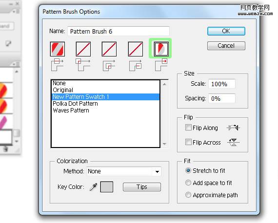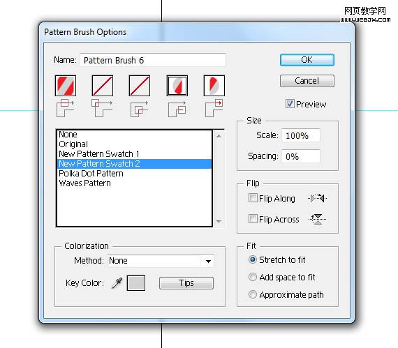 19、打開下拉菜單,選擇選項。單擊最后一個框,從列表中選擇“candy-end”。點擊確定。選擇路徑,再次點擊一下筆刷。現在看看它的樣子。