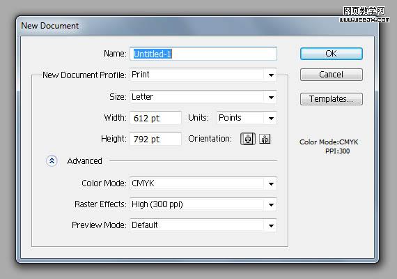 1、打開Illustrator,創建一個名為“Letter”的新文件,色彩模式設置為CMYK,72dpi。