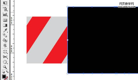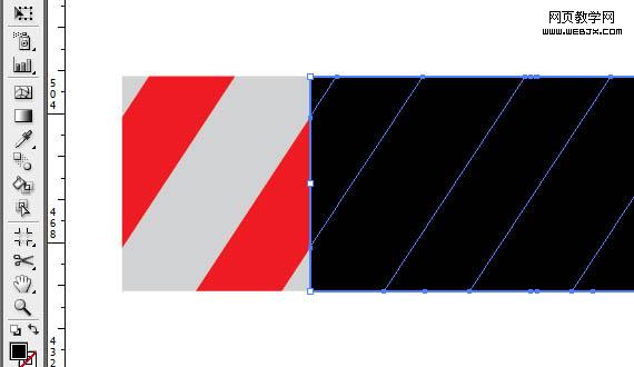 9、向右移動副本圖形直到第一個紅色條紋對齊到第二個條紋上,如下圖。降低不透明度以便看得更清楚。現在選擇上方的形狀,并設置其填充顏色為黑色。