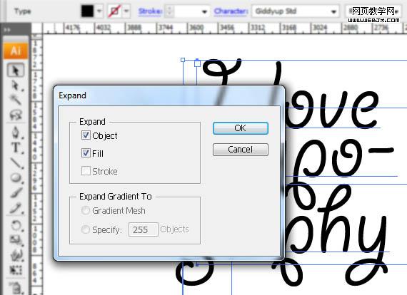 22、選擇所有文字,去對象>擴展,然后去對象>路徑>清理。