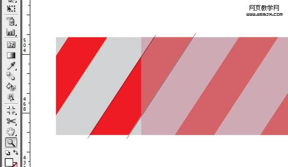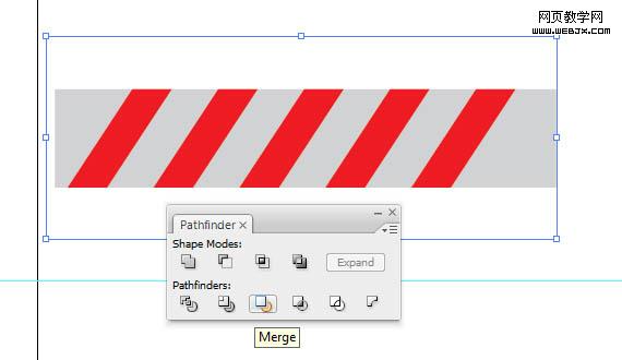 8、刪除其填充,選擇所有的紅色長方形,右鍵單擊>建立剪貼蒙版。選擇所有物件(按Ctrl + A),點擊合并按鈕。然后把合并后的圖形副本粘貼到前方(CTRL + C > Ctrl + F)。 使用橡皮擦工具(Shift + E),按住Alt鍵擦除左側紅色條紋的部分。
