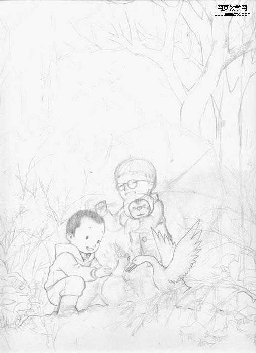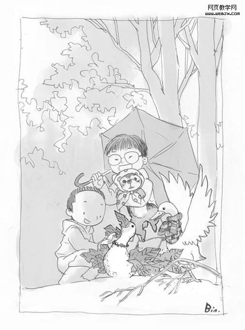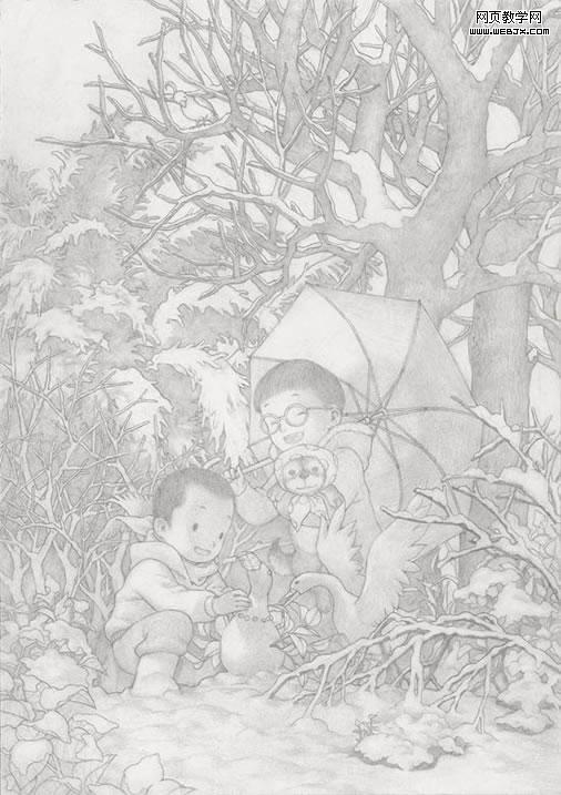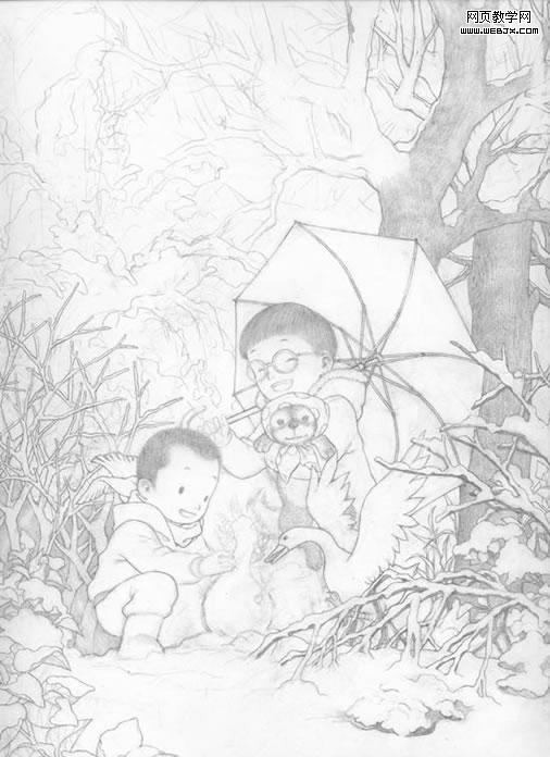 7、線稿成型后鋪上大致的調子,終于,鉛筆稿完成了!