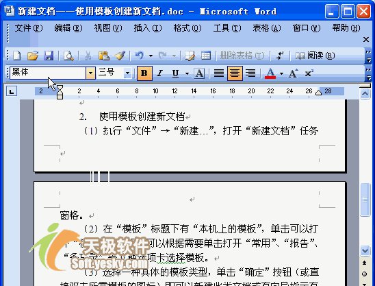 如果使用前兩種方法,Word 2003將基于通用模板創(chuàng)建新的空白文檔;使用方法三,有比較多的文檔類型可以選擇。在任務(wù)窗格中,可以新建“空白文檔”、“XML文檔”、“網(wǎng)頁”和“電子郵件”,也可以根據(jù)原有文檔或模板創(chuàng)建新文檔。