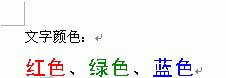 2)在頁面中輸入兩行內(nèi)容:“文字顏色:↙紅色、綠色、藍色”(↙表示每行輸完后按一下回車鍵),
