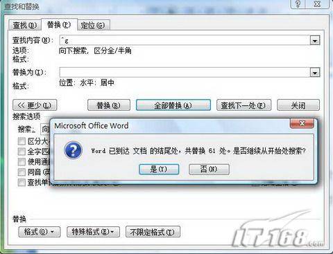 對(duì)于嵌入式的圖片,無(wú)論是Word 2007或是Word 2003,都可以直接打開(kāi)“查找和替換”對(duì)話框,先將“查找內(nèi)容”設(shè)置為“^g”,然后將光標(biāo)定位到“替換”的文本框中,首先單擊“更多”按鈕,此時(shí)可以看到搜索選項(xiàng)、格式、特殊格式等內(nèi)容,從格式的下拉菜單中選擇“圖文框”,將水平位置設(shè)置為居中,然后返回“查找和替換”對(duì)話框,單擊“全部替換”按鈕后即可生效(見(jiàn)圖2)。