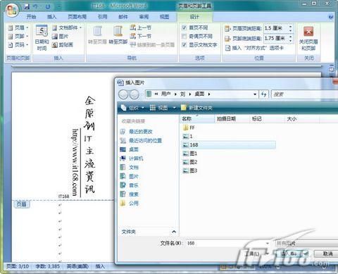圖2 回到需要加入頁眉的節段內,在“頁眉和頁腳”組中單擊“頁眉”,選擇一種模板。在這里,我們可以添加一些文字、頁碼等信息。當然,還可以加入圖片。在“設計”選項卡“插入”組中,單擊“圖片”,選擇事先制作的水印圖片,插入即可。(圖3)