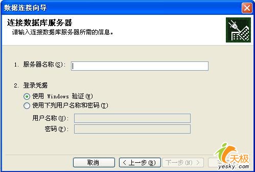 選擇“Microsoft SQL Server”選項,單擊“下一步”按鈕打開對話框。輸入服務器的名稱,登錄憑據,再單擊“下一步”,選中要插入數據的表,單擊“下一步”按鈕繼續,在打開對話框中列出即將建立的數據連接文件的名稱,單擊“完成”按鈕。