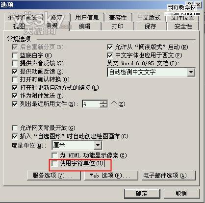 單擊“工具→選項”命令,在彈出的“選項”對話框中,選擇“常規”選項卡,這時我們會看到有一“度量單位”文本框,并且在欄中明顯輸入的計量單位是 “厘米”,注意:不要被巳填好的“厘米”蒙騙了,其實在它的下面有一個打“√”的“使用字符單位”的復選項,接下來只要把這個復選項的“√”去掉,并單擊 “確定”按鈕即可。